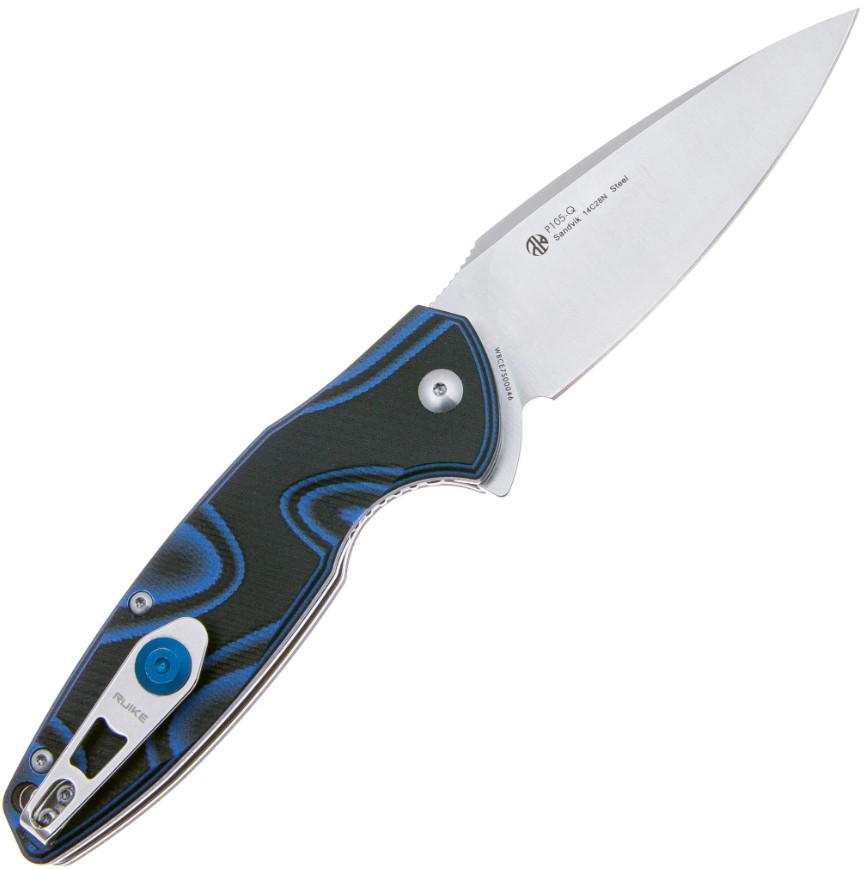 высококачественная сталь Sandvik 14C28N (твёрдость 58–60 HRC) — отличная режущая способность, устойчивость к коррозии, лёгкость заточки;